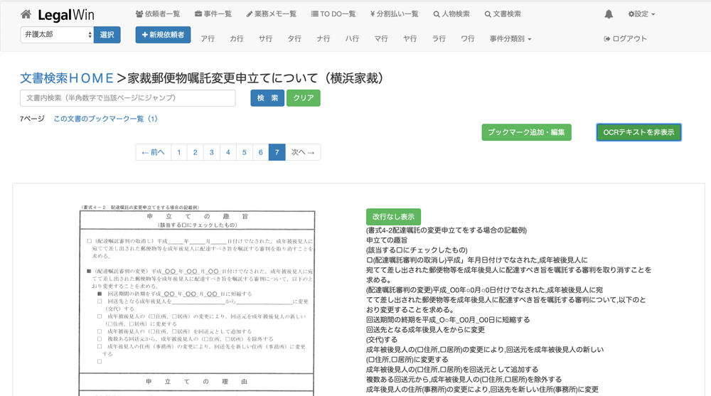 またOCRテキストはコピー・ペーストもできますので、書面の内容を引用する際や、ブックマークメモを作成する際に便利です。