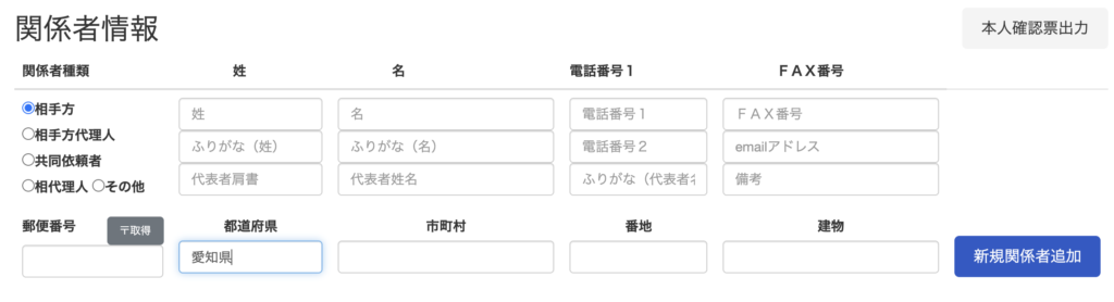 住所は分かっているものの郵便番号が分からない関係者の登録について