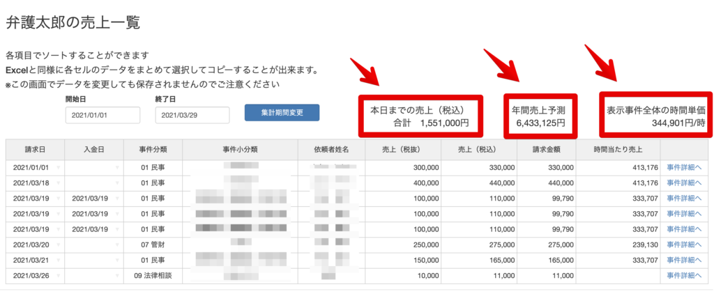 各事件ごとに売上を記録しておくと、全事件を通じた売上の合計を一覧で確認することが出来ます。
